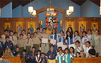 Concelebrating the Liturgy with Father Bacon was Father Anthony Falsarella, Beacon, NY, who is attached to St John the Baptist Church in Spring Valley, NY. At the conclusion of the Liturgy, awards were presented to many of the scouts who had participated in the various Orthodox scouting award programs.