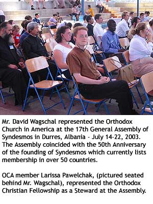 Mr. David Wagschal, Secretary of the Orthodox Church in America’s Department of External Affairs and Interchurch Relations, represented the OCA Youth Movement at the 17th General Assembly of Syndesmos, the World Fellowship of Orthodox Youth, at Saint Vlash Monstery and Academy here July 14-22, 2003.